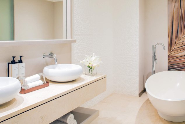 Endroit plus spacieux de 72 mètres carrés qui se compose d’une chambre principale avec un grand lit et d’une deuxième chambre à coucher avec deux lits simples; offrant intimité et paix à tous les membres de la famille. La salle de bain de la chambre famille comporte un wc, une double vasque, une baignoire en pierre et une douche pour une détente ultime.