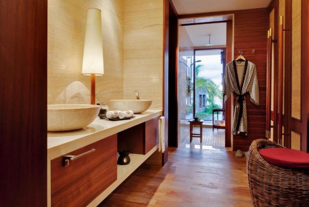 Située au rez-de-chaussée, cette suite généreuse de 84 m² (904 pieds carrés) respire le romantisme avec son parquet en bois richement travaillé, ses murs en rotin tressé et son bel extérieur en pierre naturelle. Son intérieur spacieux présente un mobilier élégant aux tons doux et une salle de bains luxueuse réalisée avec les meilleurs matériaux nobles. De grandes portes coulissantes en verre mènent à un balcon privé doté d'une piscine à débordement chauffée – option de piscine chauffée disponible – donnant sur un jardin privé. Des suites communicantes ainsi qu'une suite accessible spécialement conçue pour les personnes à mobilité réduite sont également disponibles.