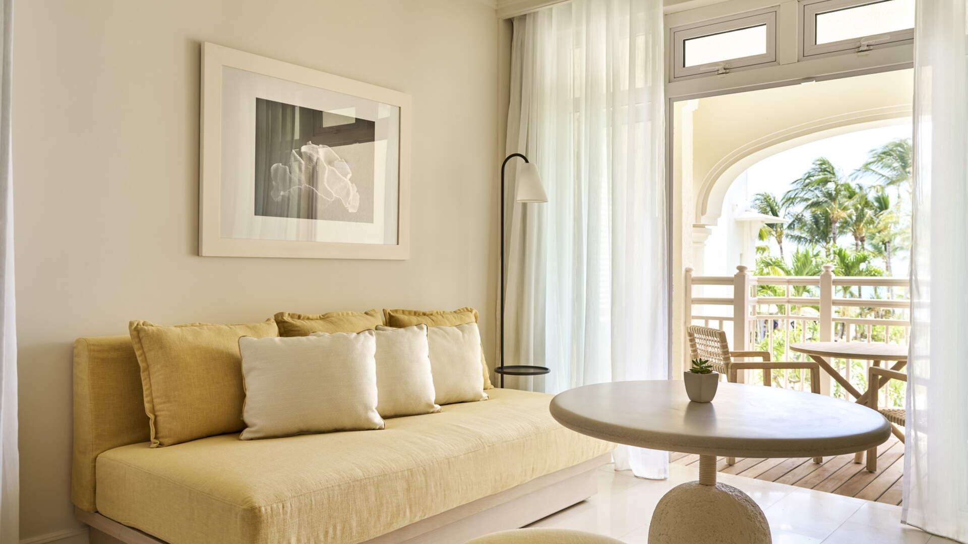Situées au rez-de-chaussée, au premier et au deuxième étage, nos Junior Suites Avec Vue Plage, offrent une vue magnifique sur la baie idyllique de Belle Mare. Les espaces intérieurs sont chics et sereins, imprégnés de nuances de sable avec des touches de couleur corail et jaune citron. Ces suites sont parfaites pour les couples ou les familles avec de jeunes enfants. La terrasse dispose d'un lit de jour pour se prélasser, tandis que le coin ‘bar’ est une version revisitée du mini bar traditionnel.