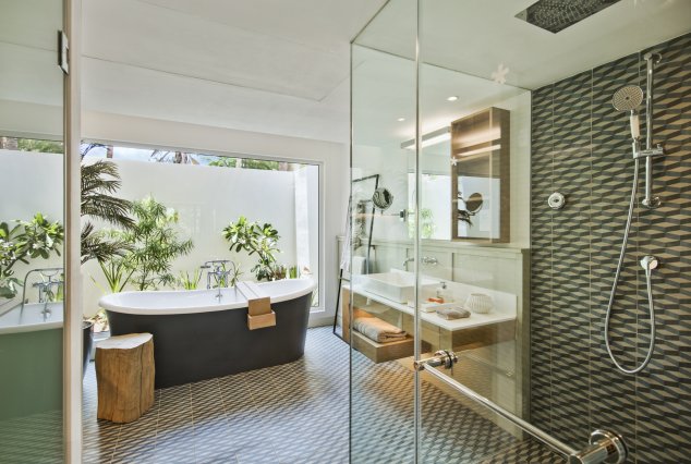 Naturellement élégante et luxueuse, cette suite s’inspire des maisons de plage. Il y a une superbe salle de bain, avec une baignoire en îlot et une immense baie vitrée donnant sur un jardin privé - pour laisser entrer toute la lumière naturelle (et le soleil mauricien). L’emplacement au rez-de-chaussée offre un accès direct à la plage et au lagon. Le design de Kelly Hoppen, vous transportent immédiatement dans une luxueuse maison de plage.