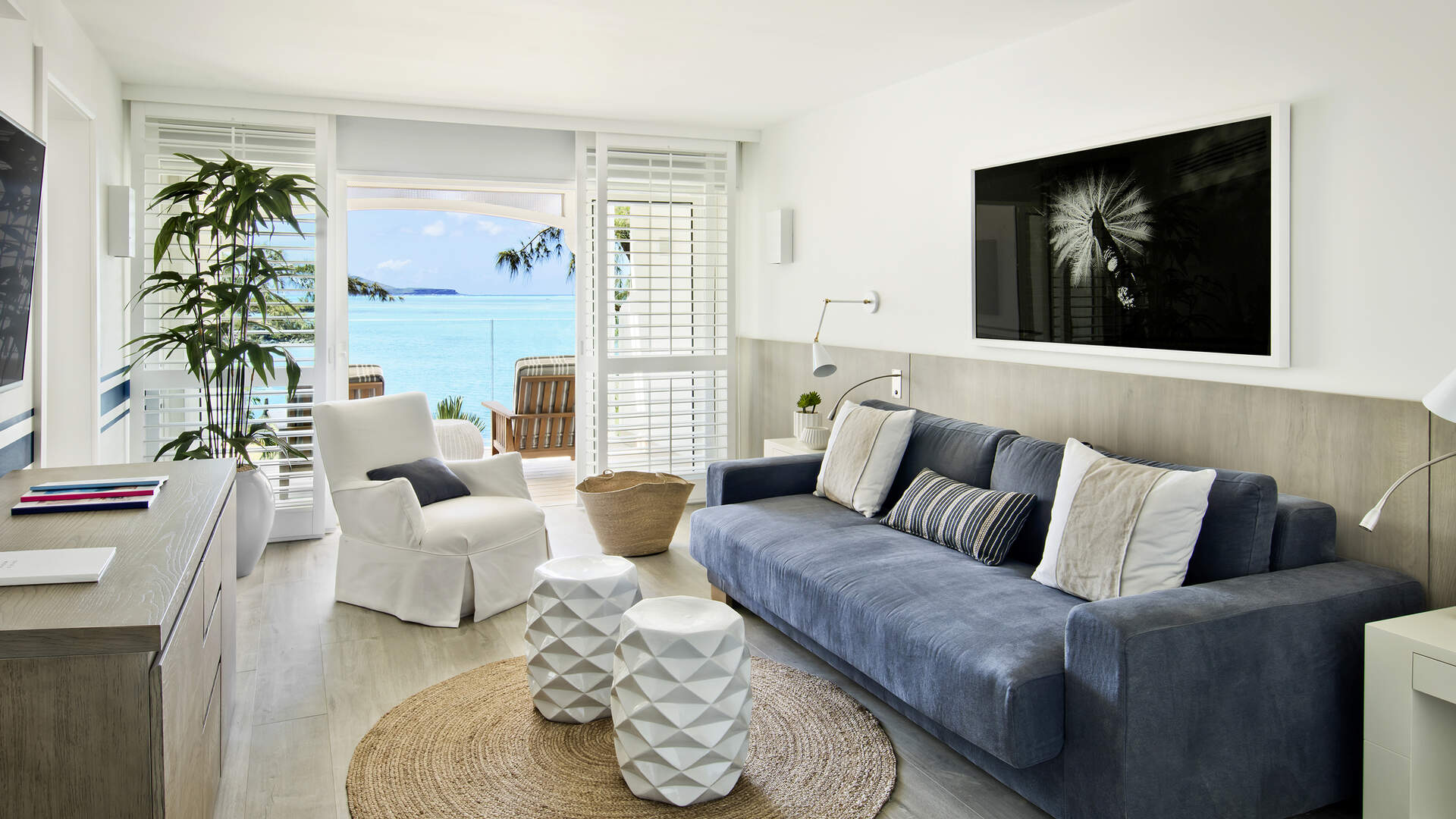 Il n’y a rien de tel que de se réveiller dans une chambre spacieuse, et d’entrevoir les rayons du soleil. Le salon, ouvert sur la terrasse extérieure, invite à la détente. Le canapé-lit peut accueillir une troisième personne. Il y a aussi un dressing, une grande et belle salle de bain, avec une baignoire et une douche à l’italienne, et une deuxième salle de bain pour plus d’intimité. Une pièce lumineuse. Tout l’espace nécessaire. Et le petit plus ? Le son de l’océan pour vous bercer.