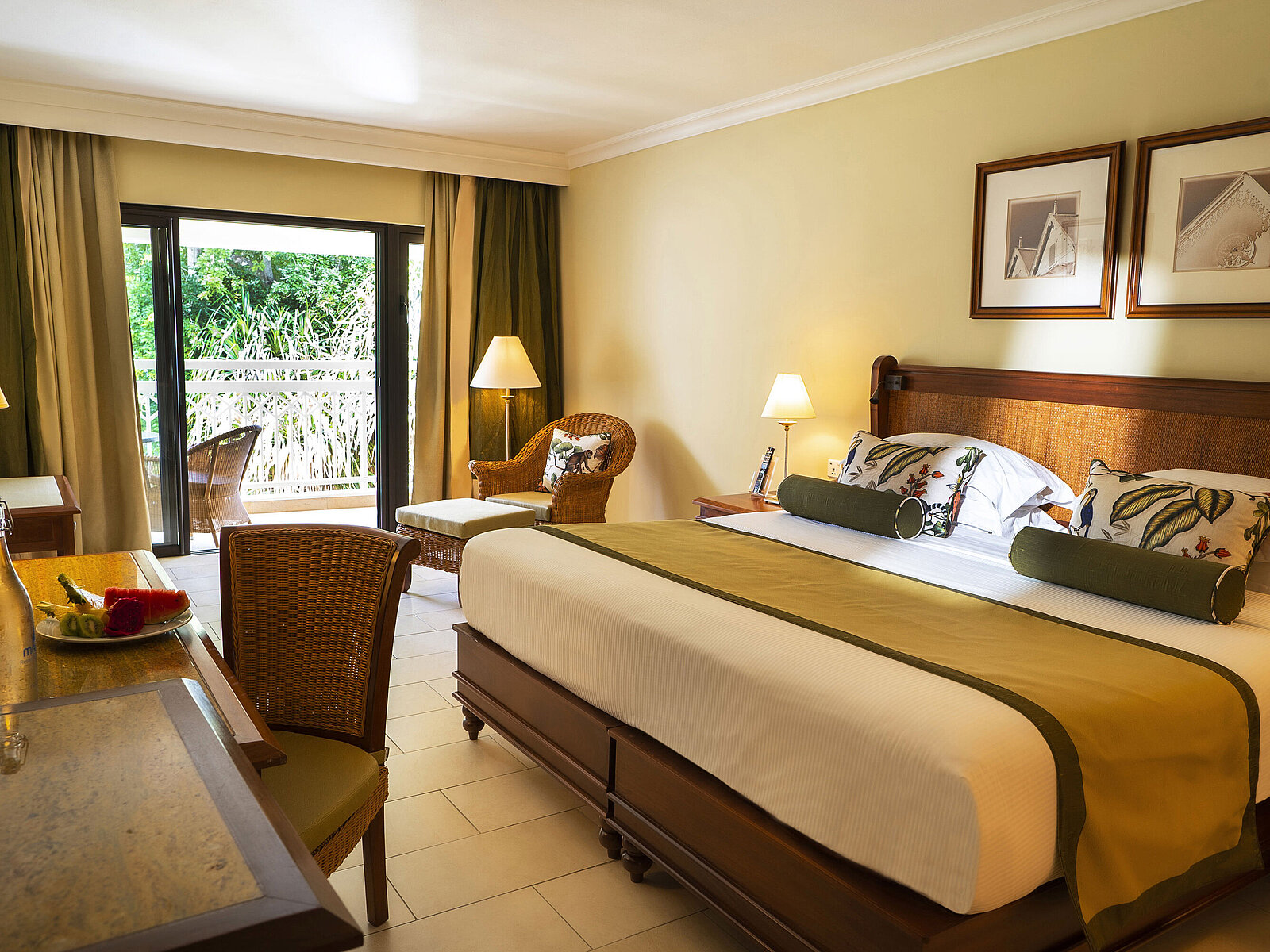 Grâce au mélange raffiné d'architecture coloniale et tropicale, les chambres doubles Deluxe de l'hôtel dégagent une atmosphère confortable et chaleureuse. La salle de bain avec baignoire et douche indépendantes est séparée de la zone de couchage par d'élégantes portes coulissantes, créant ainsi une grande sensation d'espace. Jusqu'à trois personnes trouvent suffisamment de place dans cette catégorie pour commencer la journée en étant bien reposées.
